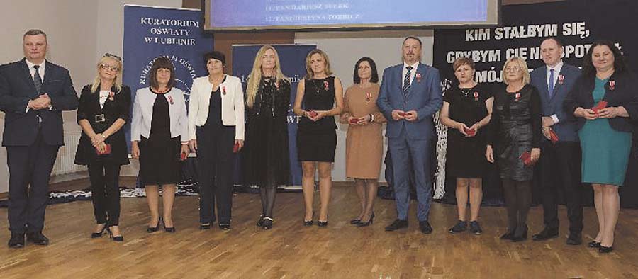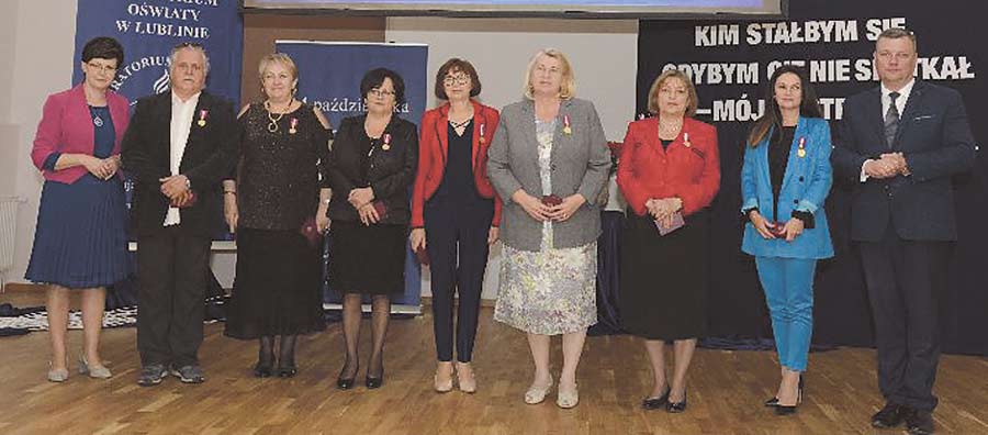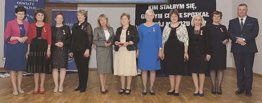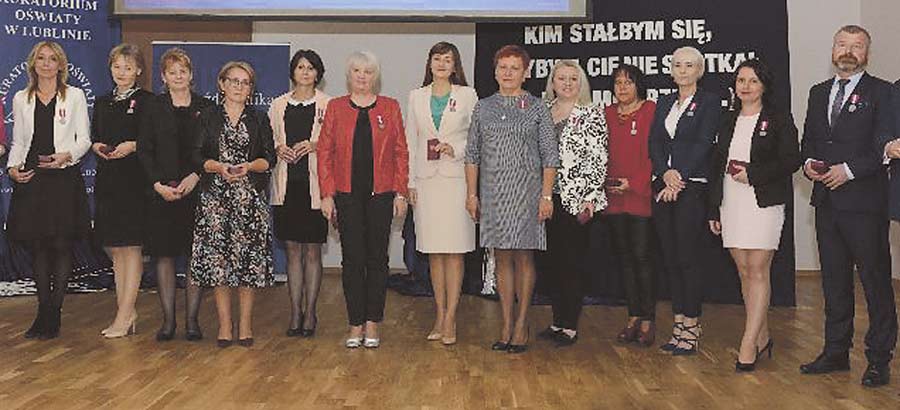 Złote Medale za Długoletnią Służbę otrzymali: Piotr Bakun (SP Stołpie), Eliza Barska (ZWiPP-P nr 1 Chełm), Lilianna Kostecka (ZSBiG Chełm), Agnieszka Kotlarska (SP Rejowiec Fabryczny), Anna Kryńska (SP Strupin Duży), Małgorzata Mazurek (SP Rejowiec Fabryczny), Urszula Połczyńska (SP nr 1 Chełm), Teresa Soszyńska (ZWiPP-P nr 1 Chełm), Elżbieta Tołyż (II LO Chełm), Małgorzata Wasiutyńska (PM nr 14 Chełm), Maria Wojtas (SP nr 11 Chełm). Srebrne Medale za Długoletnią Służbę otrzymali: Ilona Czernecka (ZSEiM Chełm), Małgorzata Kowalczyk (SP nr 11 Chełm), Ewa Lipczuk (IV LO Chełm), Ewa Mąka (ZSGiH Chełm), Luiza Nieradko (SP nr 5 Chełm), Iwona Prończuk (ZSGiH Chełm), Elżbieta Rybacka (II LO Chełm), Monika Skrzypczak (I LO Chełm), Magdalena Terpiłowska (ZWiPP-P nr 1 Chełm), Aneta Wójtowicz (ZSGiH Chełm), Marta Wronka (I LO Chełm), Artur Wróblewski (ZSGiB). Brązowe Medale za Długoletnią Służbę: Magdalena Chmielewska-Puch (ZWiPP-P nr 1 Chełm), Agnieszka Dobrowolska (ZWiPP-P nr 1 Chełm), Agnieszka Grzywaczewska (SP Okszów), Joanna Juszczak (ZSGiH Chełm), Sebastian Kogut (ZSEiM), Agnieszka Kuchta-Harmata (IV LO Chełm), Jarosław Rafalski (SP nr 5 Chełm), Renata Wituch (ZSGiH Chełm), Małgorzata Żebrowska-Zając (I LO Chełm). Medal Komisji Edukacji Narodowej: Anna Kosiniec (SP nr 1 Chełm), Teresa Kurzępa (I LO Chełm), Jolanta Lewczuk (SP nr 11 Chełm), Barbara Oleszczuk (Biblioteka Pedagogiczna Chełm), Arkadiusz Stachowicz (SP Strachosław), Elżbieta Staszczuk (PM nr 8 Chełm), Bożena Stefańczuk (ZSEiM Chełm). Medale Komisji Edukacji Narodowej na wniosek ZNP: Elżbieta Kaczyńska (SP nr 8 Chełm), Eliza Kobelska (SP nr 5 Chełm), Delfina Litwin-Baran (ZS-P nr 3 Chełm), Edyta Rymowicz (SP nr 5 Chełm), Małgorzata Stepaniuk (PM nr 13 Chełm), Agata Wojtasiuk (SP nr 8 Chełm), Marta Wójcik (SP nr 5 Chełm). Nagroda Ministra Edukacji Narodowej: Renata Wituch (ZSGiH Chełm). Nagroda Lubelskiego Kuratora Oświaty: Ewa Bida (SP nr 1 Chełm), Dorota Czerniakiewicz (SP nr 7 Chełm), Dorota Jaszczuk (SP Pawłów), Bożena Komenda (PM nr 8 Chełm), Marzanna Stus (ZSGiH Chełm), Renata Wacewicz (PM nr 2 Chełm). (opr. mo, fot. Dariusz Kostecki)