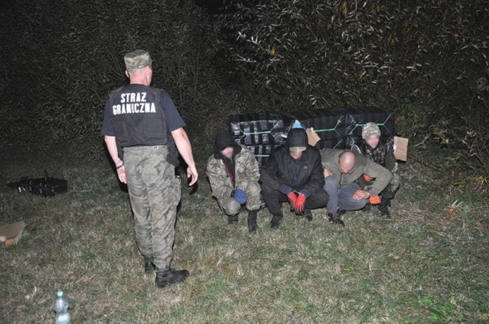 – W pobliżu miejscowości Siedliszcze (gmina Wola Uhruska) funkcjonariusze SG z placówki w Woli Uhruskiej zauważyli osoby niosące od strony rzeki czarne pakunki – mówi Dariusz Sienicki, rzecznik komendanta NOSG w Chełmie. – Na miejscu, podczas kontroli czterech mężczyzn, ustalono, że są to obywatele Ukrainy, którzy wcześniej przy pomocy łodzi pontonowej nielegalnie przekroczyli granicę państwa w celu przemytu papierosów. W pudłach, które funkcjonariusze zabezpieczyli na miejscu zdarzenia, znajdowały się papierosy bez polskich znaków akcyzy o wartości prawie 160 tys. zł – tłumaczy Sienicki. Zatrzymani odpowiedzą za nielegalne przekroczenie granicy państwowej oraz przestępstwo skarbowe. Cała czwórka, po przesłuchaniu, została przekazana stronie ukraińskiej. (b)