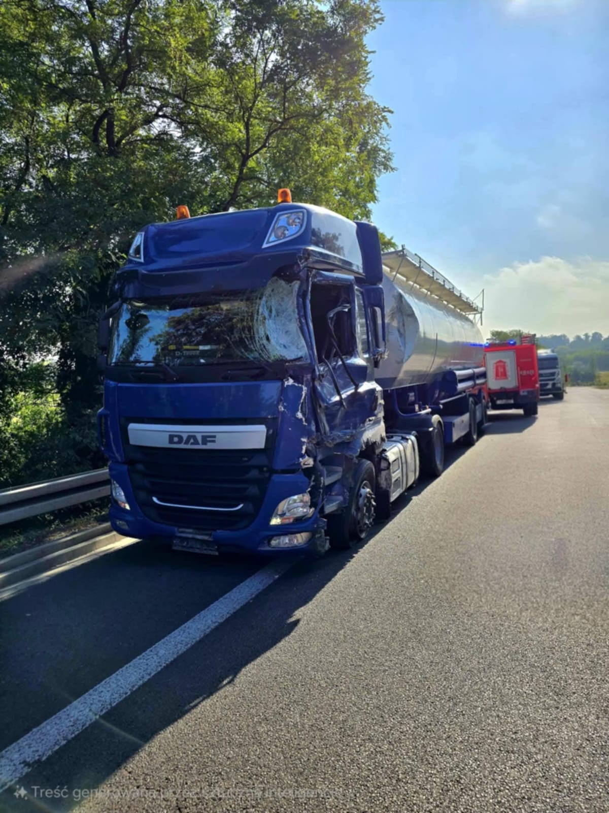 Ze wstępnych ustaleń policji wynika, że 40-latek jadący w kierunku Lublina ciężarową cysterną marki DAF, na krasnostawskiej obwodnicy zjechał częściowo na przeciwny pas ruchu doprowadzając do bocznego zderzenia się z jadącym w kierunku Zamościa samochodem ciężarowym marki MAN. – Obaj kierujący byli trzeźwi. Będący na miejscu zespół ratownictwa medycznego podjął decyzję o przewiezieniu do szpitala w Krasnymstawie mężczyznę kierującego Dafem. Ruch w miejscu zdarzenia odbywa się wahadłowo – informuje podkomisarza Anna Chuszcza, oficer prasowy krasnostawskiej policji. (kg, fot. Stacja Ratownictwa Medycznego w Chełmie).