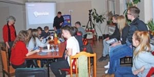 Młodzi ludzie z Hanny spotkali się z fotografami – Adamem Purcem oraz Mariuszem Błaszkiewiczem. Na początku zapoznali oni uczestników spotkania ze sprzętem fotograficznym i przekazali wiele cennych informacji z zakresu zasad kompozycji, czy rodzajów fotografii. Opowiedzieli też o podstawach obsługi programów do obróbki zdjęć, doborze odpowiednich środków w celu uzyskania różnych efektów artystycznych. Na zakończenie spotkania młodzież zaprezentowała swoje zdjęcia, które dotychczas wykonała w ramach realizacji projektu i po wspólnym obejrzeniu oraz przeanalizowaniu materiału, uzyskała wiele cennych rad, wskazówek ale i pochwał.