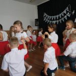 Ostatnia część uroczystości rozpoczęła się polonezem w wykonaniu dzieci, po którym nastąpił montaż słowno-muzyczny. Przedszkolaki podziękowały wszystkim pracownikom za wspólnie spędzone chwile, a pani dyrektor wraz z nauczycielkami wręczyła absolwentom książki, pamiątkowe dyplomy i upominki. (a)