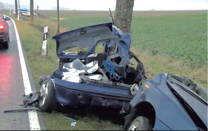 Mrożący krew w żyłach wypadek na obczyźnie. Auto uderzyło z impetem w drzewo, oplotło się wokół i praktycznie rozerwało na pół. Dwaj mężczyźni zginęli na miejscu, uwięzieni pomiędzy wrakiem a pniem. Dwaj w ciężkim stanie trafili do niemieckich szpitali. Policja niemiecka jest zszokowana – nikt nie wie, co dokładnie się stało.