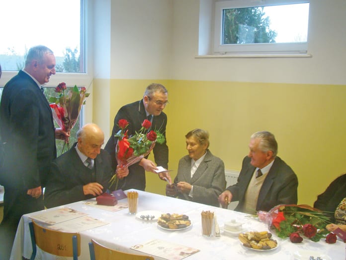 Złote Gody świętowali: Jan i Ryszarda Białas, Tadeusz i Daniela Dudzińscy, Wiktor i Eugenia Jakubczak, Stanisława i Zbysław Majkut, Jan i Janina Marek, Adam i Stefania Nowosadzcy, Bogumił i Wanda Ornal, Eugeniusz i Irena Pszenniak, Jan i Lucyna Sienkiewicz oraz Jan i Genowefa Sobieszczańscy. Medale, dyplomy i kwiaty wręczali: wójt gminy Rudnik Tadeusz Zdunek, przewodniczący rady gminy Adam Kucharski i kierownik USC Kazimierz Repeć. (k)