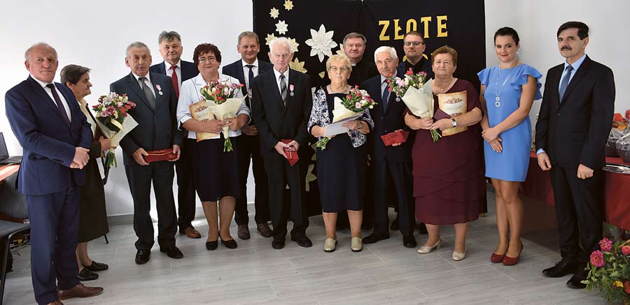 Pół wieku pożycia małżeńskiego symbolizuje trwałą miłość i wierność, jest także powodem do radości i dumy, gdyż nielicznym dane jest osiągnąć taki staż małżeński. To niezwykłe wydarzenie świętowali w tym roku państwo: Janina i Witold Baran, Czesława i Mieczysław Jagiełło, Krystyna i Józef Lipa, Krystyna i Tadeusz Piróg, Marianna i Czesław Ruszniak, Anna i Zygmunt Stępniak, Wiesława i Stanisław Wasil oraz Irena i Zenon Wójcik.
