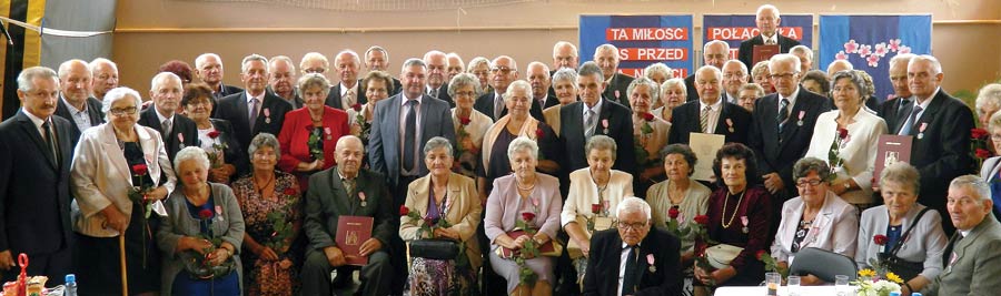 Uroczystości rozpoczęła msza święta w kościele pw. św. Wawrzyńca w Żółkiewce, którą celebrował ks. proboszcz Marian Wiech. Podczas mszy jubilaci odnowili przyrzeczenie małżeńskie. Uroczystość wręczenia medali za długoletnie pożycie odbyła się w SP w Żółkiewce. Życzenia małżonkom złożyli m.in.: przewodniczący rady gminy Żółkiewka Henryk Jaremek, radny powiatowy Marcin Zając w imieniu starosty oraz wójt Żółkiewki Jacek Lis. Złote Gody świętowali: Józef i Danuta Banach, Edward i Danuta Bandosz, Edward i Genowefa Błaszczak, Edward i Alina Bożek, Henryk i Cecylia Brożek, Alfred i Izabela Buczkowski, Stanisław i Kazimiera Cichosz, Józef i Zenobia Daniel, Stanisław i Anna Dudziński, Kazimierz i Halina Dzieciuch, Wiktor i Danuta Dziedzic, Zenon i Marianna Garbacz, Eugeniusz i Anna Gąsławski, Lucjan i Zofia Grabiec, Edward i Irena Izdebski, Mieczysław i Irena Jabłoński, Józef i Irena Jaremek, Jan i Marianna Jarmuł, Roman i Alina Jarmuł, Edward i Halina Jędruch, Henryk i Eleonora Kłos, Eugeniusz i Halina Kopeć, Władysław i Czesława Kostkiewicz, Bogdan i Teresa Krasucki, Edward i Irena Król, Stanisław i Henryka Kulmaga, Kazimierz i Mirosława Krzywicki, Stanisław i Władysława Lenard, Bolesław i Zofia Lewicki, Edward i Henryka Łukaszczyk, Lucjan i Zofia Madej, Roman i Henryka Malinoś, Wiesław i Stanisława Małocha, Marian i Alina Martyna, Marian i Stanisława Matysiak, Bolesław i Wiesława Miszczak, Mieczysław i Danuta Miś, Wiesław i Marianna Podgórski, Eugeniusz i Irena Rewerski, Eugeniusz i Halina Rzeżutka, Zbigniew i Barbara Sosiński, Stanisław i Krystyna Stachyra, Kazimierz i Barbara Suszek, Marian i Czesława Szabat, Józef i Zofia Szarga, Marian i Agnieszka Szumski, Józef i Anna Szyjduk, Janusz i Elżbieta Świetlicki, Józef i Wiesława Terentowicz, Mirosław i Marianna Wal, Marian i Marianna Wdowiak, Anatol i Janina Wójcik. (kg)