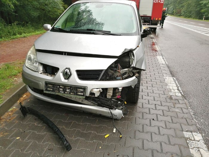 Znak skoszony, auto rozbite