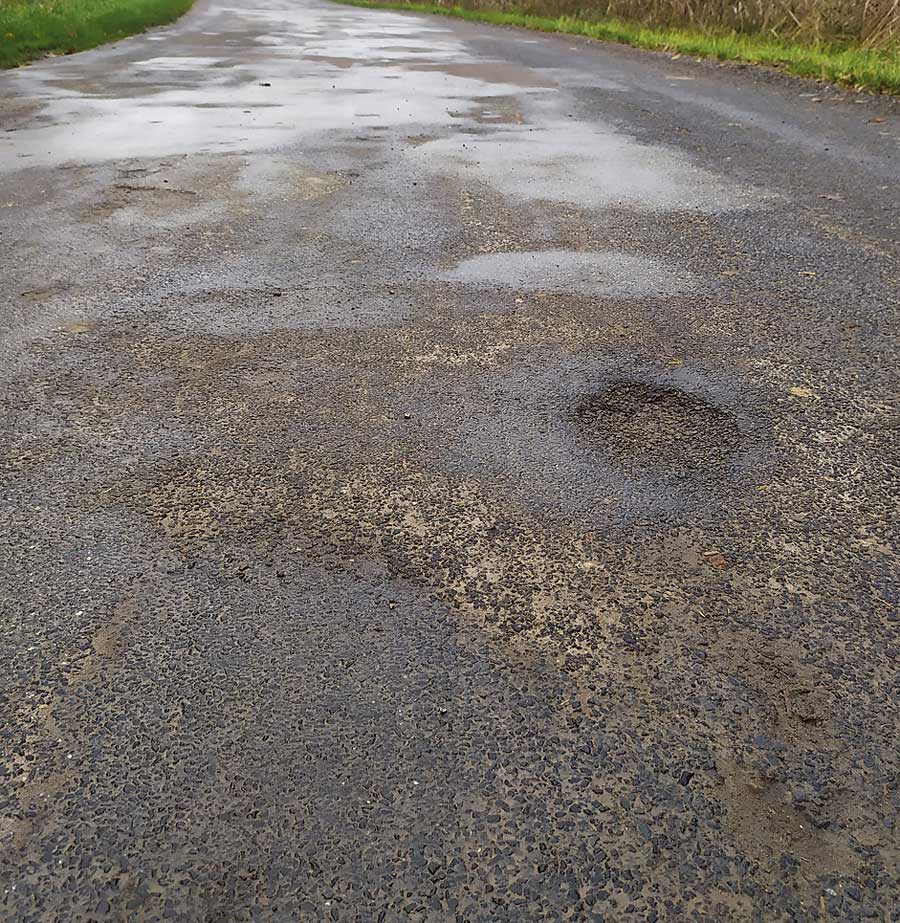 Wieloletnie doraźne naprawy na tym odcinku drogi spowodowały, że nawierzchnia jest bardzo nierówna i pofałdowana, a w okresie wiosennym co roku szybko pojawiają się ubytki. W poprzednich latach droga podlegała remontom cząstkowym, a koszt tych napraw wynosił od 5 do 10 tys. zł. rocznie. (k)