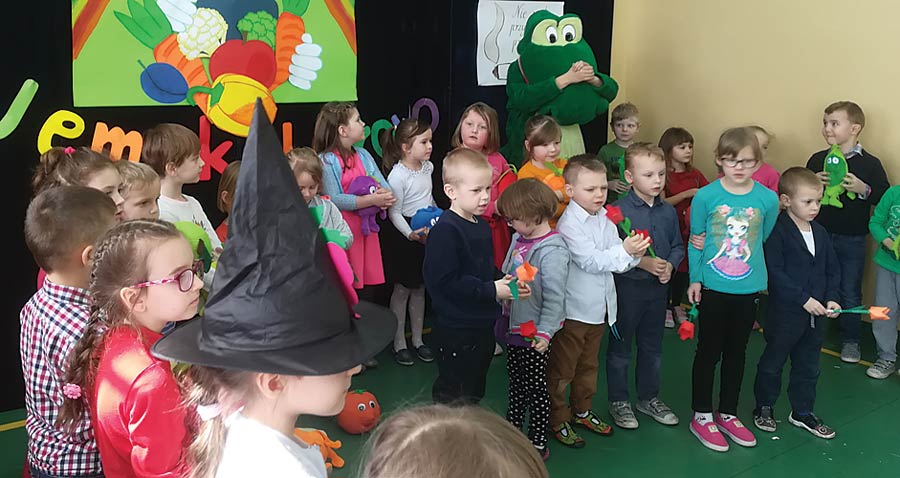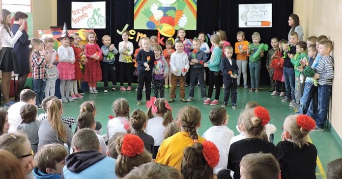 Przedszkolaki mogły pochwalić się wiadomościami i umiejętnościami zdobytymi w przedszkolu, wystawiając „Bajkę o owocach i warzywach”. Natomiast dzieci z klas I-III zaprezentowały tańce. W ramach Dnia Otwartego klasa I z wielką radością gościła przedszkolaków w swojej sali, pokazując im jak uczą się pierwszaki i opowiedziała o najciekawszych wydarzeniach w szkole. Dla maluchów było to nie lada przeżycie, ponieważ niektóre z nich po raz pierwszy przekroczyły próg szkoły. Organizatorzy przygotowali również wiele atrakcji skierowanych do starszych uczniów, między innymi: zawody sportowe i zręcznościowe, pokazy chemiczne czy też udział w ćwiczeniach praktycznych udzielania pierwszej pomocy pod okiem uczniów klasy VII. Zainteresowanie i ogólną radość budził smok Dinuś, z którym można było zrobić pamiątkowe zdjęcie i pospacerować. Udana impreza była wspólnym dziełem, a największą wartością były uśmiechnięte, radosne buzie dzieci. (a)