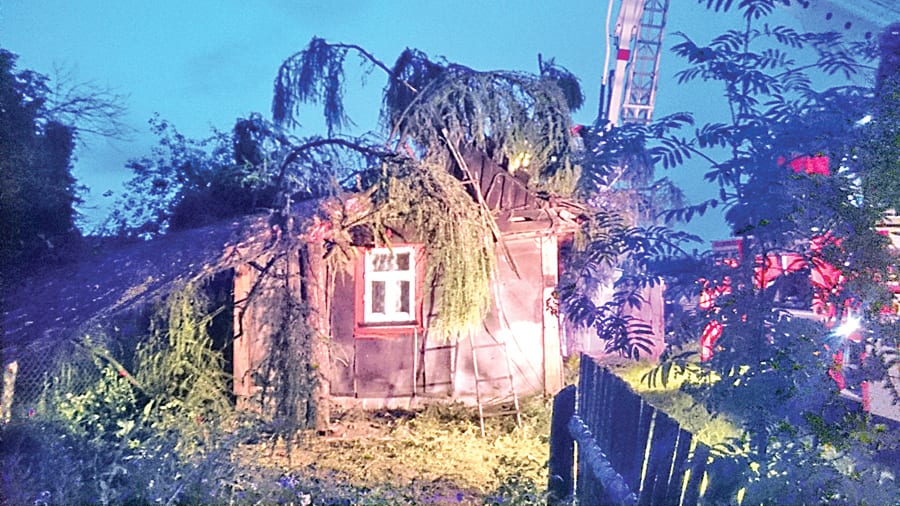 Niedzielna (26 czerwca) burza nie tylko udaremniła koncert muzyki disco polo w Hannie, ale narobiła mnóstwo szkód w całym powiecie. W Horostycie (gm. Wyryki) omal nie doszło do tragedii, bo na drewniany dom przewrócił się modrzew. Na szczęście przebywającej w środku kobiecie nic się nie stało.